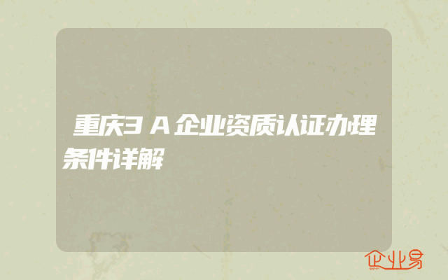 - 重庆3A企业资质认证办理条件详解