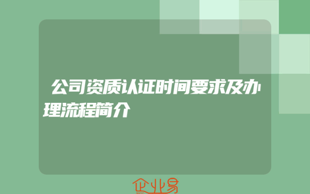 - 公司资质认证时间要求及办理流程简介