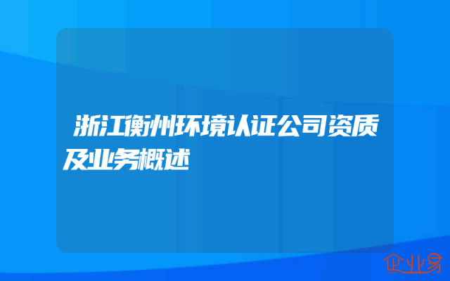 - 浙江衡州环境认证公司资质及业务概述