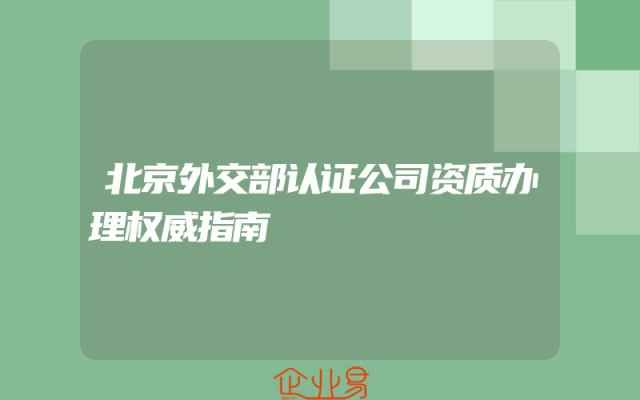 - 北京外交部认证公司资质办理权威指南