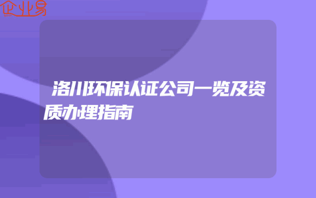 - 洛川环保认证公司一览及资质办理指南一、洛川环保认证公司概览随着环保意识的日益增强,洛川地区的环保产业也在迅速发展。众多环保认证公司如雨后春笋般涌现,为企业提供全方位的环保服务。这些公司涵盖了废水处理、废气治理、土壤修复、环境影响评价等多个领