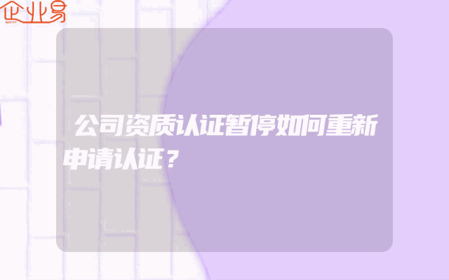 - 公司资质认证暂停如何重新申请认证?了解资质认证暂停原因首先,当公司的资质认证被暂停时,必须要清楚了解暂停的原因。这可能涉及到公司的经营状况、管理水平、产品质量等方面未能达到既定的标准或规定。在这个过程中,企业需要全面了解自身的不足之处,为后