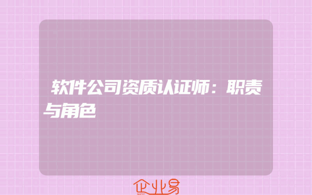 - 软件公司资质认证师:职责与角色解析一、引言随着信息技术的快速发展,软件行业正日益成为支撑全球经济增长的重要支柱之一。在软件行业中,软件公司资质认证师扮演着至关重要的角色。他们负责确保企业满足各项资质要求,从而保障软件产品的质量和服务的可靠性