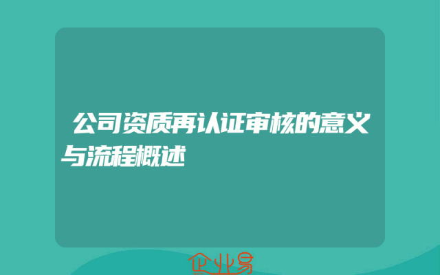 - 公司资质再认证审核的意义与流程概述一、公司资质再认证审核的意义在当今竞争激烈的市场环境中,企业资质再认证审核对公司发展具有重要的意义。首先,资质再认证审核是对企业经营管理能力的检验,它确保了企业具备承接相关项目或业务的资格。其次,再认证过程