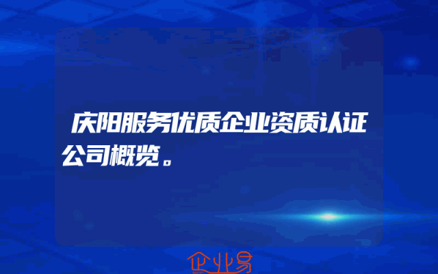 - 庆阳服务优质企业资质认证公司概览。