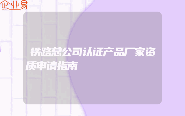 - 铁路总公司认证产品厂家资质申请指南