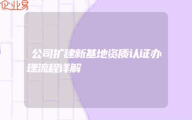 - 公司扩建新基地资质认证办理流程详解