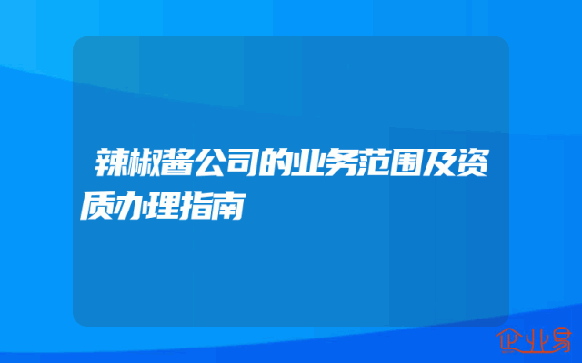 - 辣椒酱公司的业务范围及资质办理指南一、辣椒酱公司的业务范围作为一家专业的辣椒酱生产企业,其业务范围十分广泛。首先,公司主要负责辣椒酱的研发、生产、加工以及销售。此外,公司还提供个性化的定制服务,以满足不同消费者的需求。除此之外,辣椒酱公司还