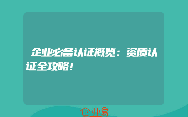 - 企业必备认证概览:资质认证全攻略!