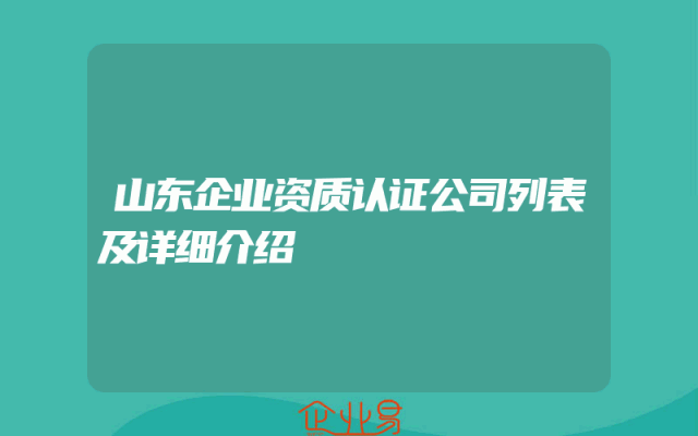 - 山东企业资质认证公司列表及详细介绍