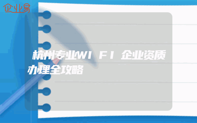 - 杭州专业WIFI企业资质办理全攻略
