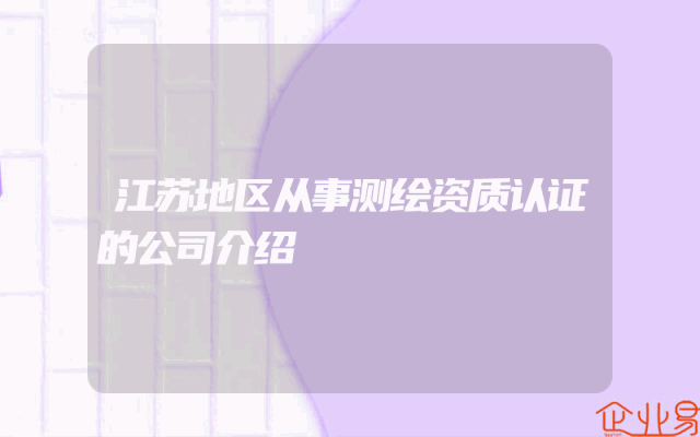 - 江苏地区从事测绘资质认证的公司介绍