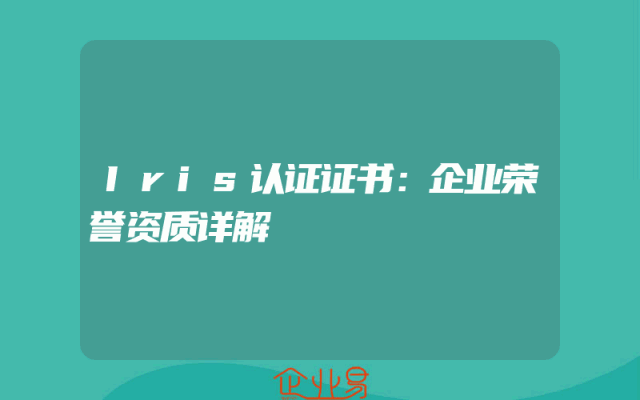 - Iris认证证书:企业荣誉资质详解