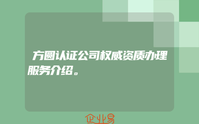 - 方圆认证公司权威资质办理服务介绍一、权威认证服务,开启企业品质时代随着市场经济的快速发展,企业在激烈的市场竞争中要想立足,除了拥有优质的产品和服务外,还需要具备一系列的权威资质认证。方圆认证公司作为业内领先的资质办理服务机构,致力于为企业提