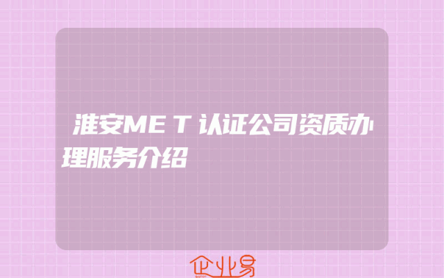 - 淮安MET认证公司资质办理服务介绍一、淮安MET认证公司背景淮安MET认证公司作为一家专业的企业服务提供者,致力于为企业提供全方位的资质办理服务。随着市场需求的不断增长和行业监管的加强,企业资质的重要性日益凸显。淮安MET认证公司凭借丰富的