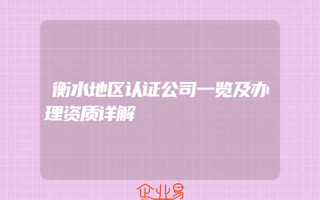 - 衡水地区认证公司一览及办理资质详解