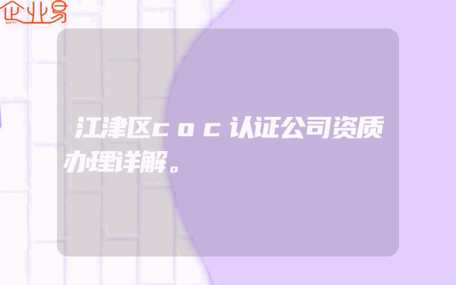 - 江津区coc认证公司资质办理详解。