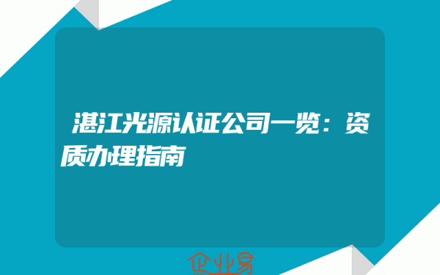 - 湛江光源认证公司一览:资质办理指南