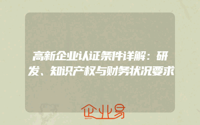 - 高新企业认证条件详解:研发、知识产权与财务状况要求