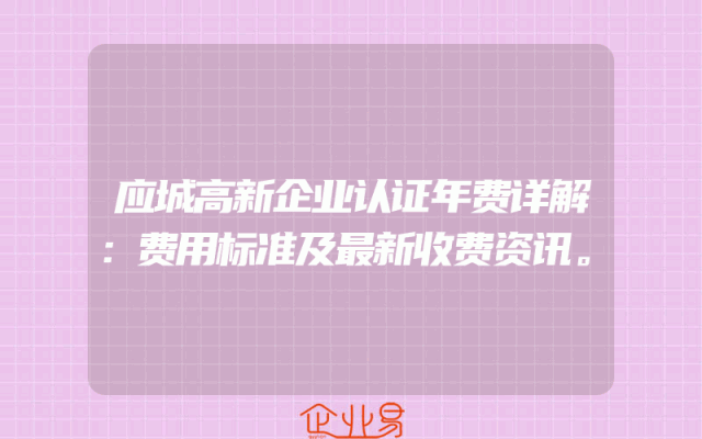 - 应城高新企业认证年费详解:费用标准及最新收费资讯。