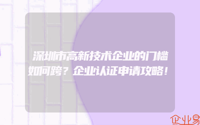 - 深圳市高新技术企业的门槛如何跨?企业认证申请攻略!