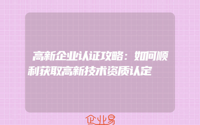 - 高新企业认证攻略:如何顺利获取高新技术资质认定