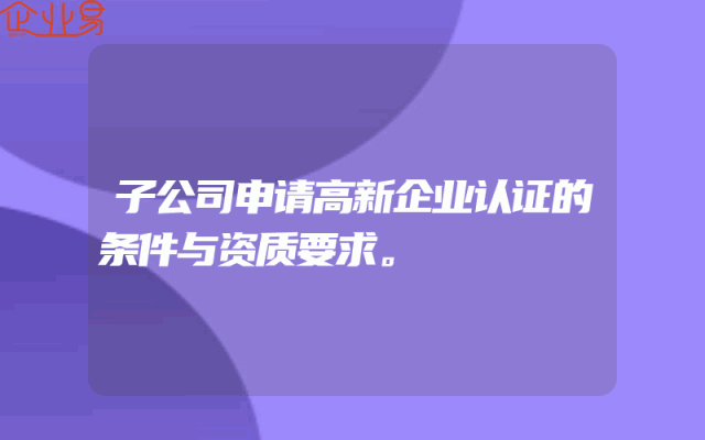 - 子公司申请高新企业认证的条件与资质要求。