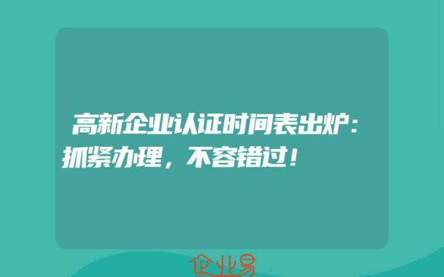 - 高新企业认证时间表出炉:抓紧办理,不容错过!