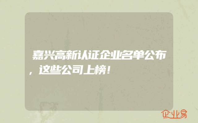 - 嘉兴高新认证企业名单公布,这些公司上榜!