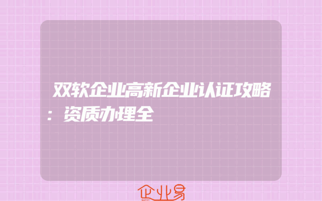 - 双软企业高新企业认证攻略:资质办理全