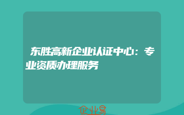 - 东胜高新企业认证中心:专业资质办理服务