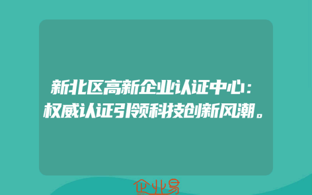 - 新北区高新企业认证中心:权威认证引领科技创新风潮。