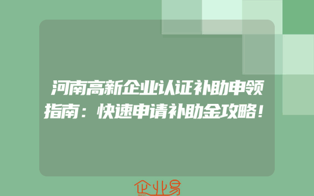 - 河南高新企业认证补助申领指南:快速申请补助金攻略!