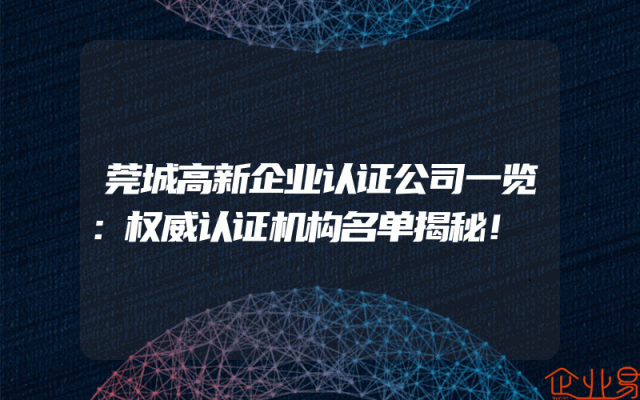 - 莞城高新企业认证公司一览:权威认证机构名单揭秘!