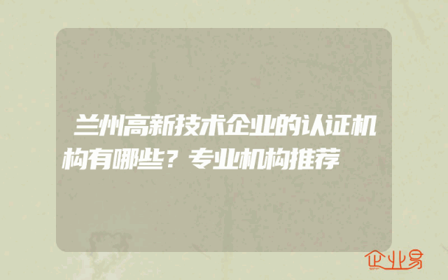 - 兰州高新技术企业的认证机构有哪些?专业机构推荐