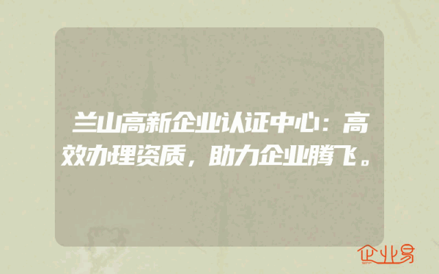 - 兰山高新企业认证中心:高效办理资质,助力企业腾飞。