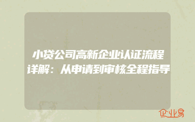 - 小贷公司高新企业认证流程详解:从申请到审核全程指导