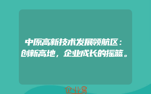 - 中原高新技术发展领航区:创新高地,企业成长的摇篮。