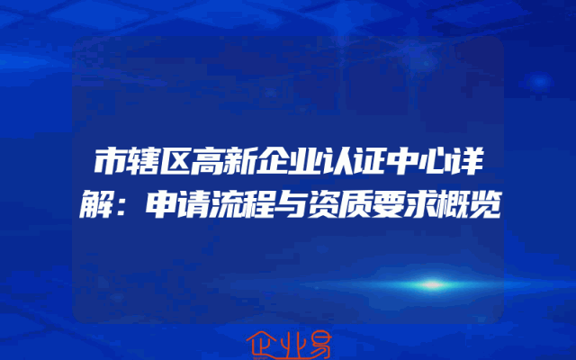 - 市辖区高新企业认证中心详解:申请流程与资质要求概览
