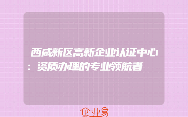 - 西咸新区高新企业认证中心:资质办理的专业领航者
