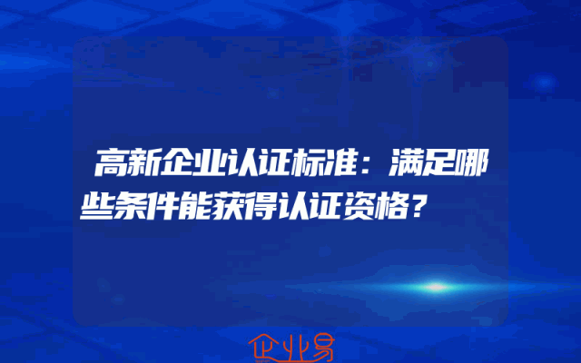 - 高新企业认证标准:满足哪些条件能获得认证资格?
