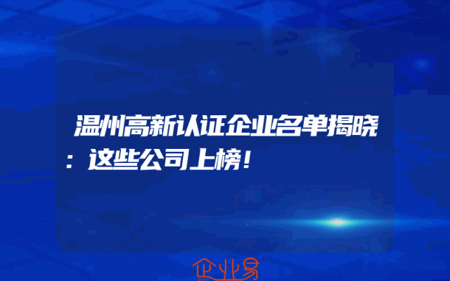 - 温州高新认证企业名单揭晓:这些公司上榜!