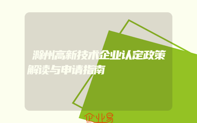 - 滁州高新技术企业认定政策解读与申请指南