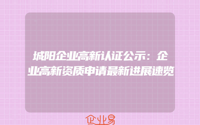 - 城阳企业高新认证公示:企业高新资质申请最新进展速览