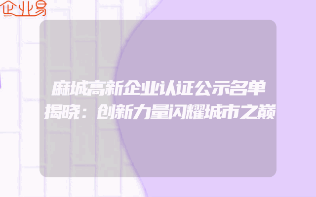 - 麻城高新企业认证公示名单揭晓:创新力量闪耀城市之巅