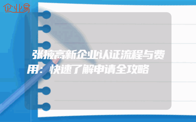 - 张掖高新企业认证流程与费用:快速了解申请全攻略