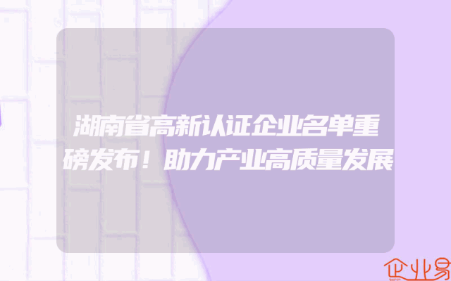 - 湖南省高新认证企业名单重磅发布!助力产业高质量发展