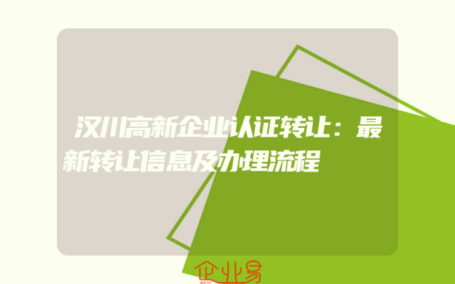 - 汉川高新企业认证转让:最新转让信息及办理流程
