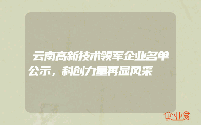 - 云南高新技术领军企业名单公示,科创力量再显风采