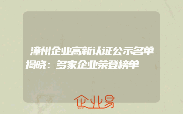 - 漳州企业高新认证公示名单揭晓:多家企业荣登榜单